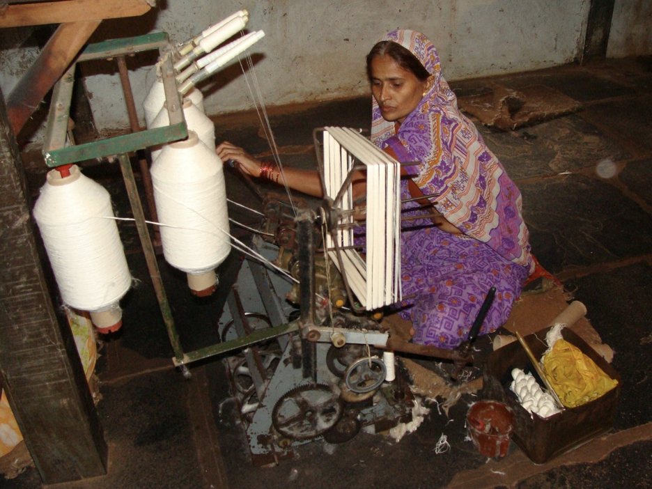When India did win its independence, the elected path forward was not through handweaving but industrialization. The displaced cotton field workers were pulled into the new cotton factories to produce mechanically spun yarn. The Indian government provided this yarn to handweavers in a nod to the preservation of traditional practices and modes of self-sufficiency, at least for the time being.